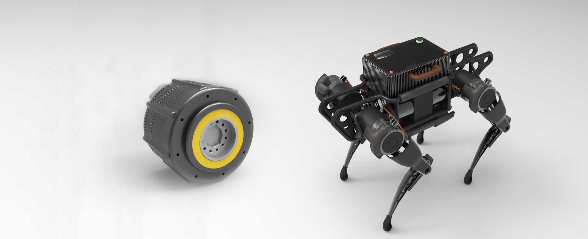 12自由度四足仿生機器人,整機12套關節電機,單關節電機功率1kW,峰值輸出扭矩200Nm,最高輸出速度180rpm,電機重量2kg.